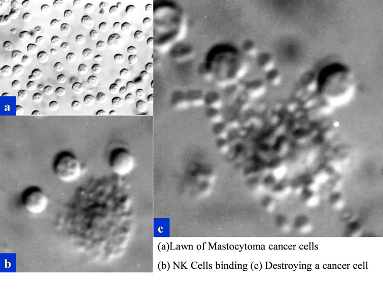 One of the primary objectives of immune system stimu-ation is to increase the number and vitality of Natural Killer Cells (NKC). These immune cells have been shown to attack cancer cells and cells infected by viruses. NKC destroy their targets by releasing substances that damage the offending cell, leading to an immune response that eliminates the cell. If NKC target and destroy cancer cells, why does cancer exist? Large enough numbers of NKC are activated to a level required for a potent anti-malignancy action. Virtually every immunology book supports that NK cells will seek and destroy mutated cells to prevent cancer.